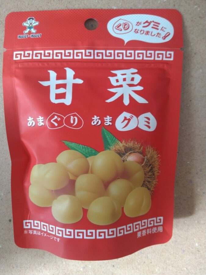 確かに、甘栗の味がしますが、甘栗のように溶けてなくならず、ずっと口の中に残るので違和感を感じます😐