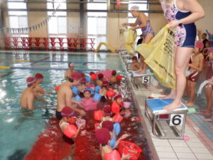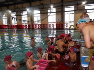 プールではお菓子まきです♪