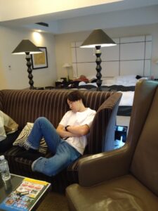 朝風呂から朝食までの時間に二度寝する中村コーチ&上西コーチ😪