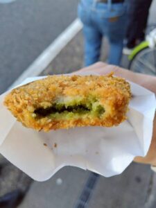 抹茶コロッケだけに、中身が緑です😛