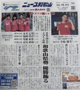 先日ブログでご紹介したニュース和歌山の取材ですが、10月4日(土)号の一面に掲載してもらいました!