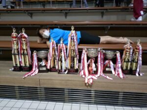 カップ&トロフィーを集めて、ご満悦な様子の垣内コーチ😆