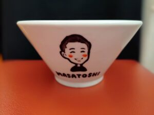 名前と似顔絵が描かれた丼です😍