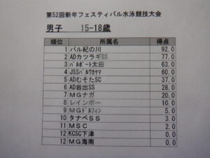 1月18日(日)に秋葉山プールで「第52回新年フェスティバル水泳競技大会」が行われました。