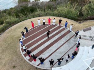 朝の体操は、雑賀崎の灯台の下で毎日行われました。