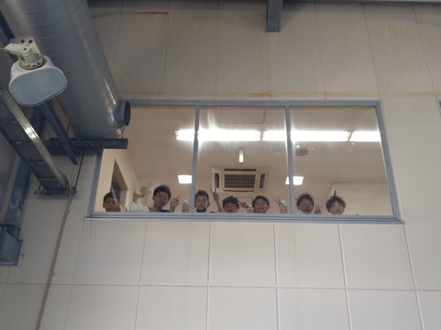 練習中、ふとギャラリーを見ると、合宿班の男の子達が昼食のお弁当を食べながら練習を見ていました👀
