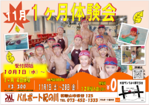 10月に入ってから配布・申込を受け付けています1ケ月体験会開催のお知らせになります。