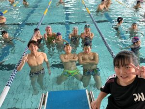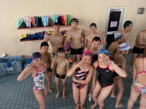 小学生から大学生が同じチームで一緒に泳いでる姿は、見ていてとても楽しそうでした🎵