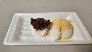 きな粉砂糖とあんこをのせて食べました🥢つきたてのおもちは柔らかくて