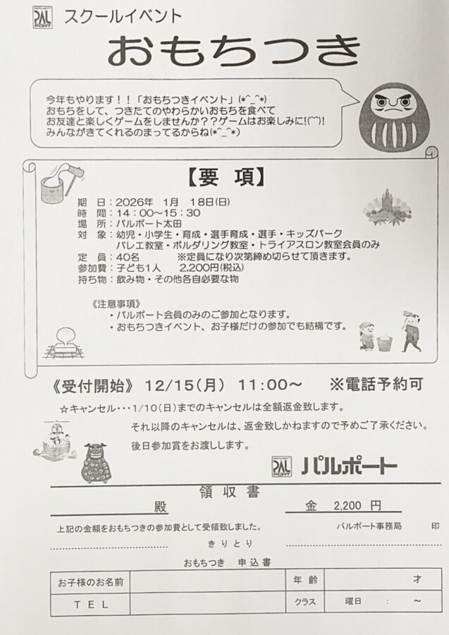 さて、来年1/18(日)におもちつきイベントを開催します👏(*´ω`*)