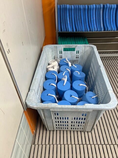 水色かごの中、きれいに同じむきで、整理整頓してくださいね!
