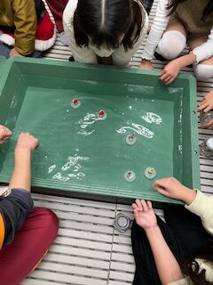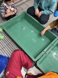 自分でマスコットを選んで、スポンジへ付けました。そのスポンジをお水の中へ入れました。
