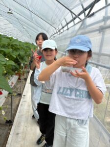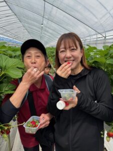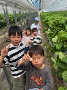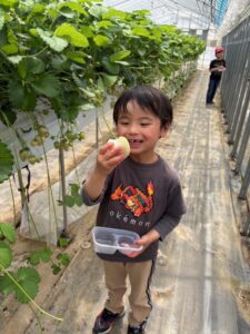 いちご狩りのハウスに到着し、